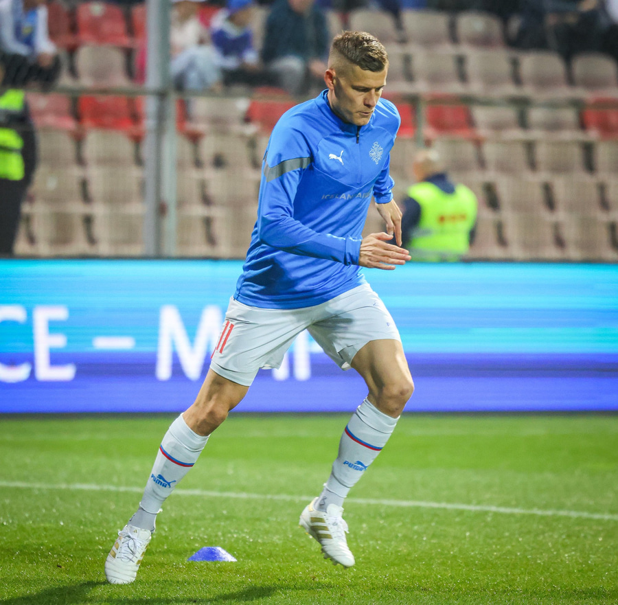 „Það er geggjað að undankeppnin sé að byrja, mikilvægir leikir og mikið undir. Liðið er vel gírað og það er ég líka," segir Arnór. „Það eru margir í okkar hóp að spila mikið og spila vel. Það er stór plús fyrir þetta verkefni að við séum með menn í fantaformi."