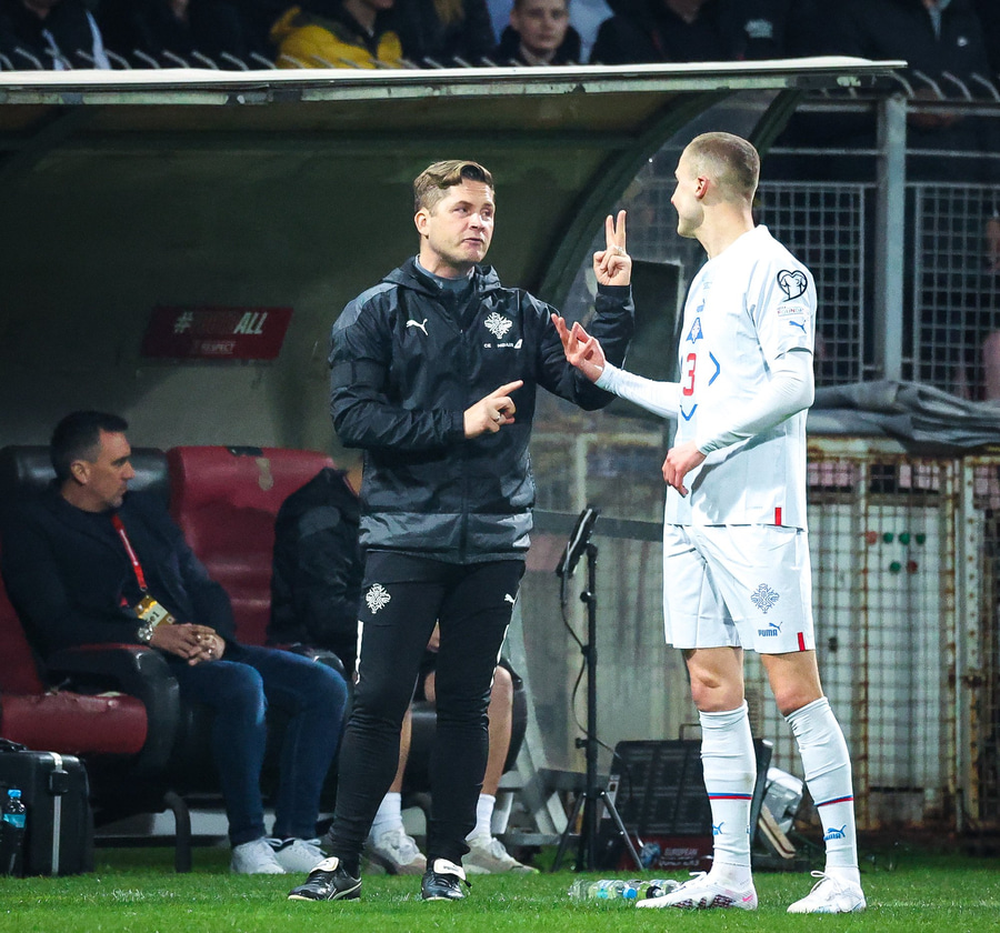 „Það yrði frábært að koma vel út úr þessum glugga, sem við ætlum að gera, og fá spennandi leiki hér heima gegn Slóvakíu og Portúgal í vonandi sól og blíðu. Fyrri leikurinn er sautjánda júní og vonandi stemning og fullur Laugardalsvöllur."