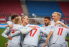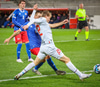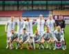 Rétt eins og gegn Bosníu erum við alhvítir í þessum leik. Liechtenstein í bláum treyjum, rauðum stuttbuxum.