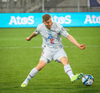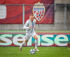 Ísland fær aukaspyrnu. Jóhann Berg með fyrirgjöf í teiginn sem markvörður heimamanna grípur.