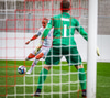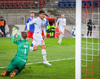 En náði ekki miklum krafti. Buchel í marki Liechtenstein varði.