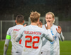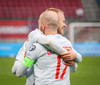 Lars Traber stálheppinn að skora ekki sjálfsmark, setti boltann rétt framhjá eigin marki.
