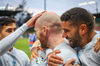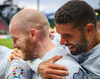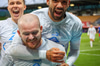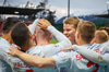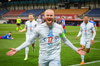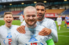 Aron fær heiðursskiptingu eftir að hafa skorað þrennu.