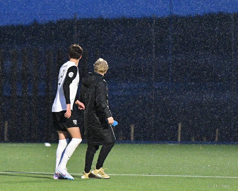 Úlfur Ágúst og Hörður Ingi gera sig klára hér niðri á hliðarlínu.