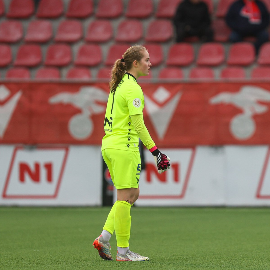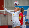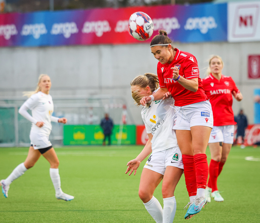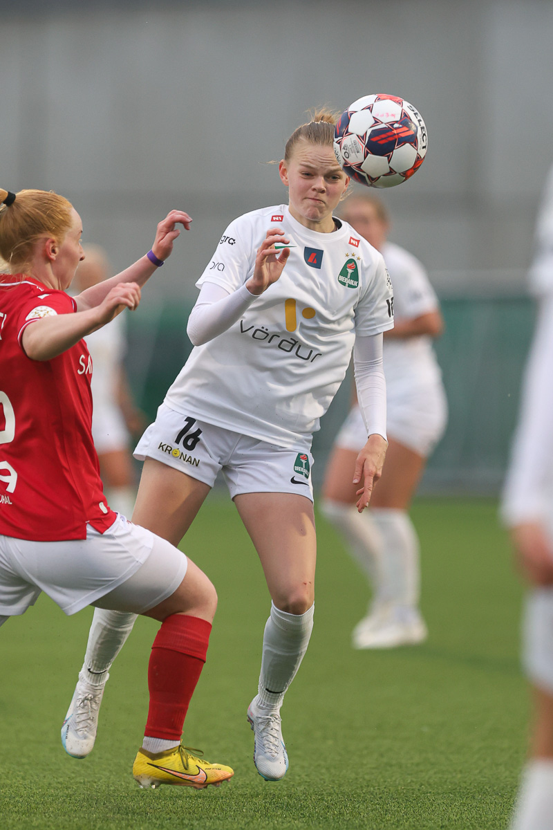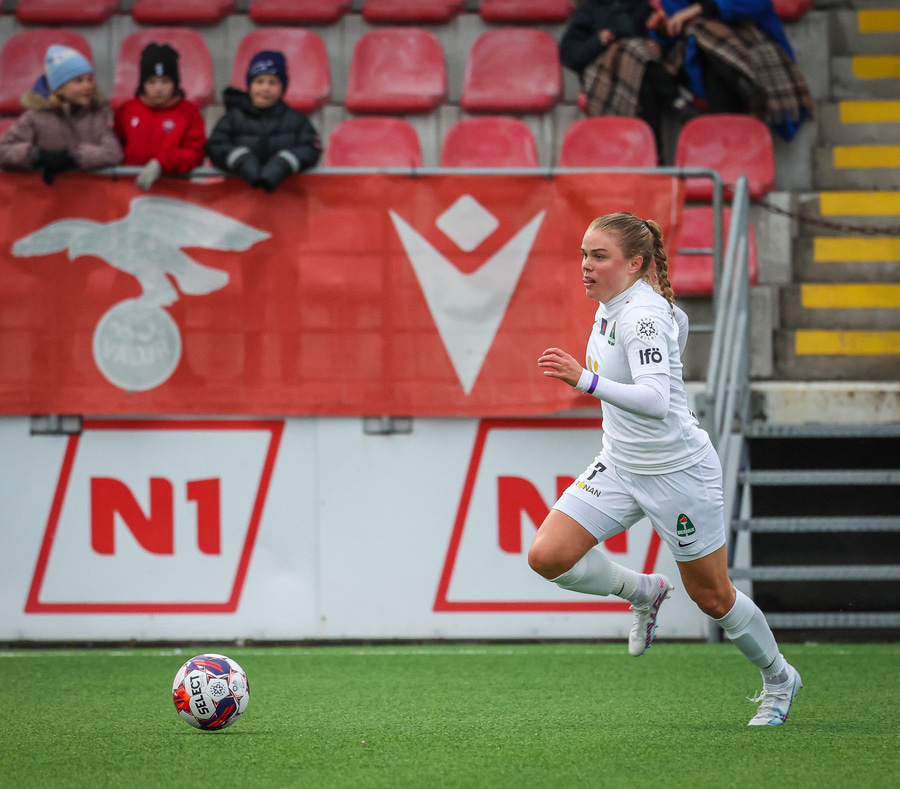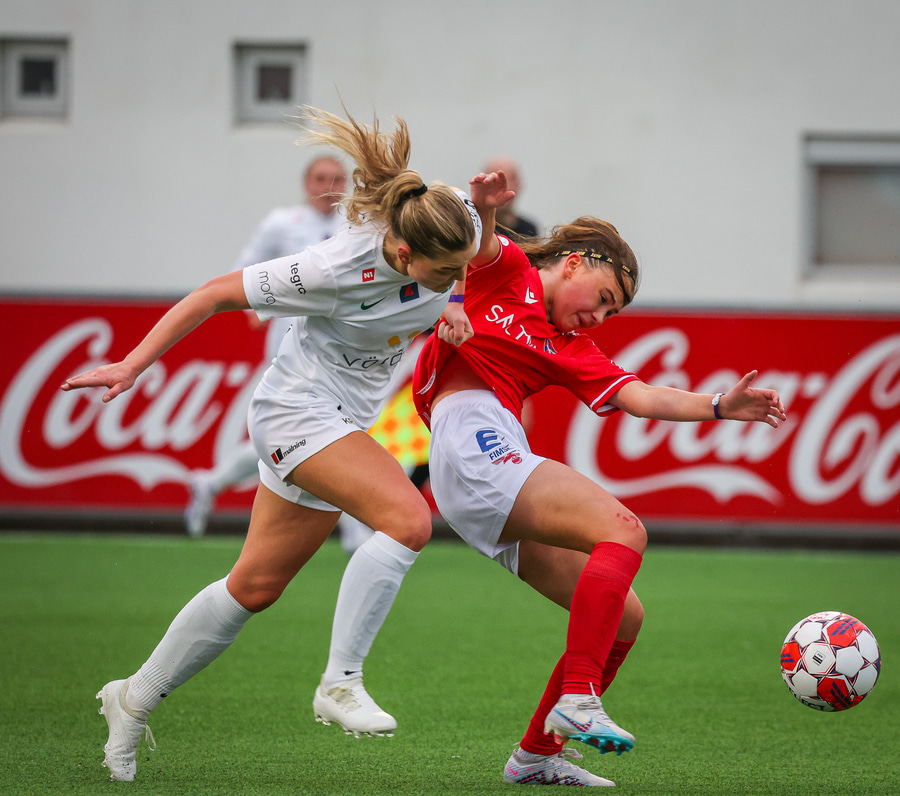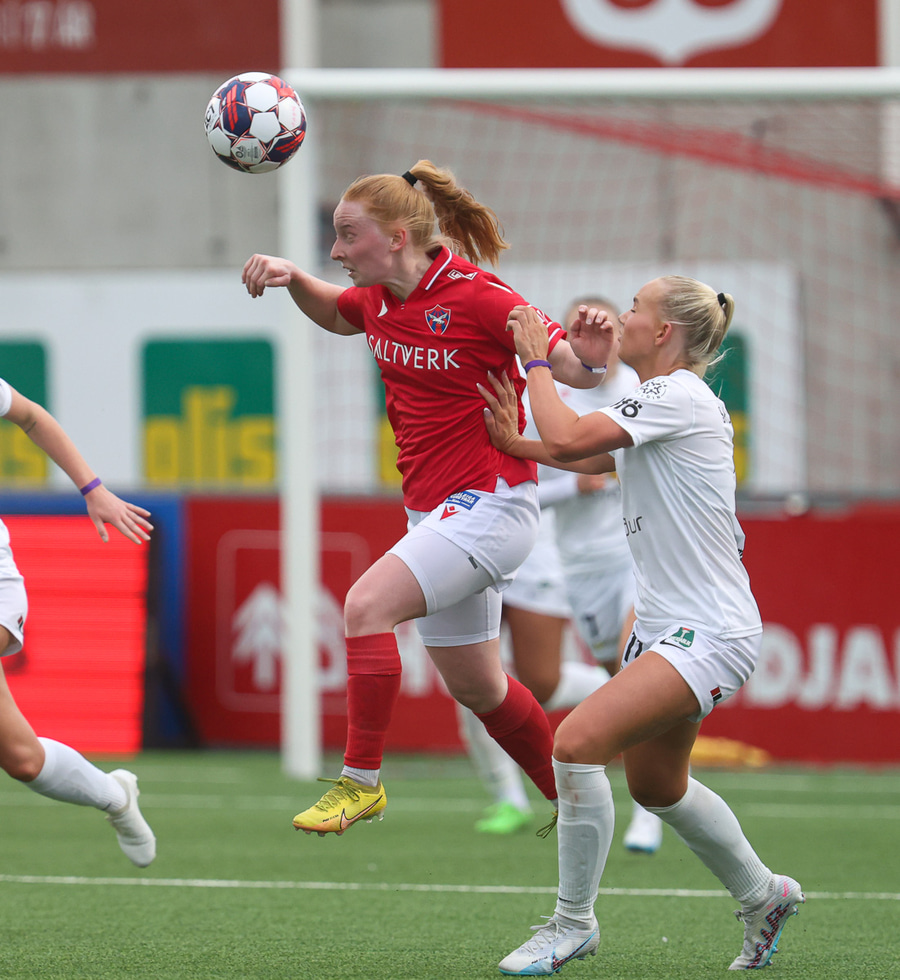 Fyrirgjöf fyrir mark Vals þar sem Agla María nær fríum skalla en beint á Fanney Ingu!