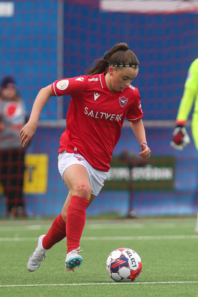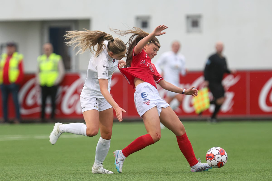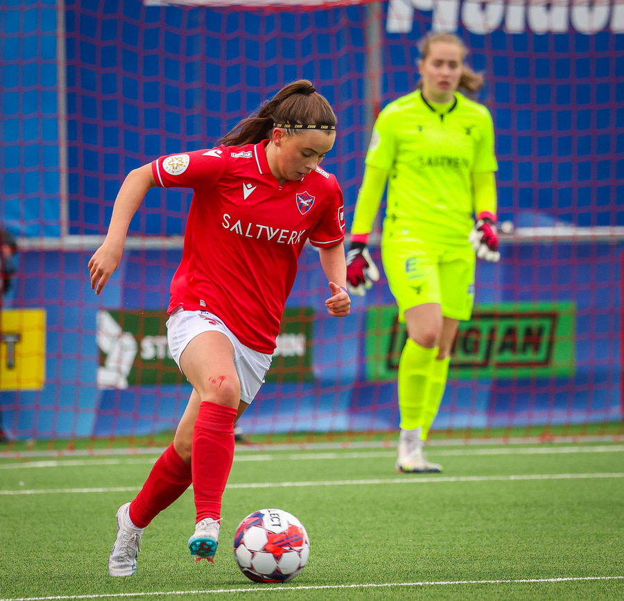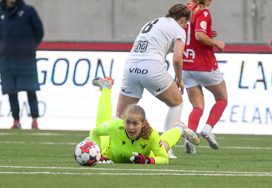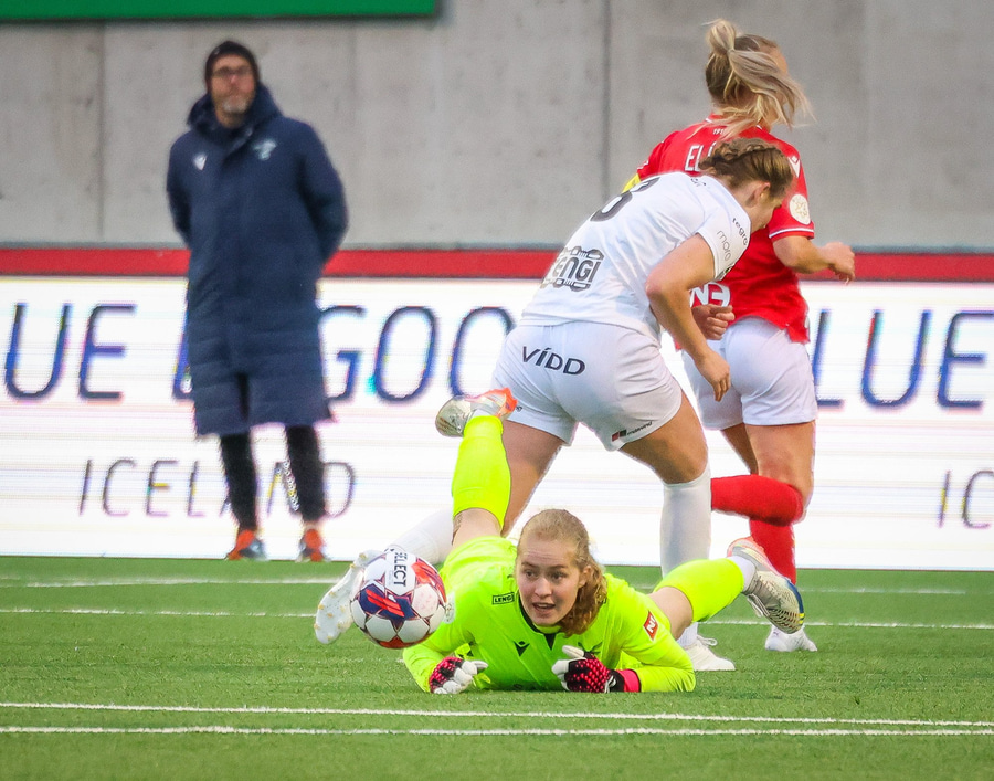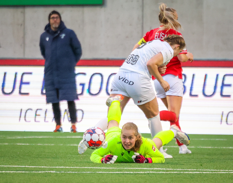 Fyrirgjöf fyrir markið sem Telma slær út beint til Þórdísar Elvu sem á slappt skot framhjá markinu.
