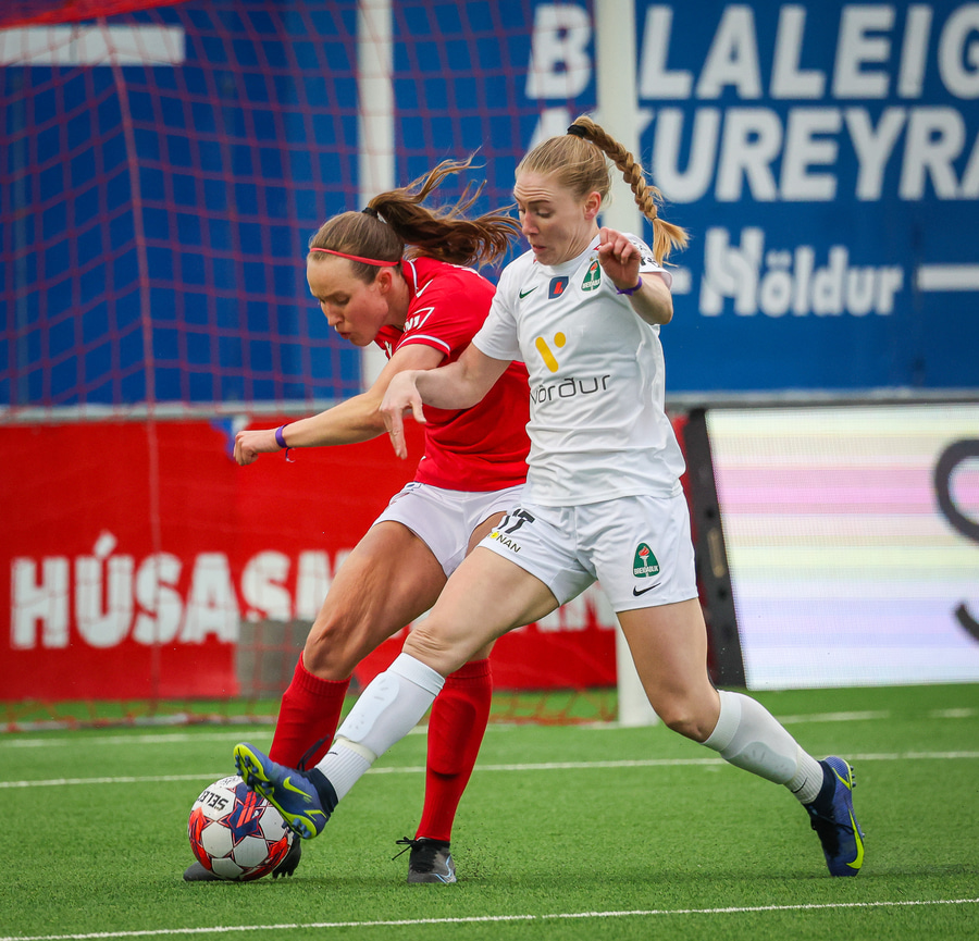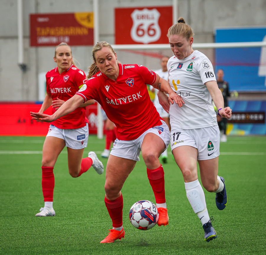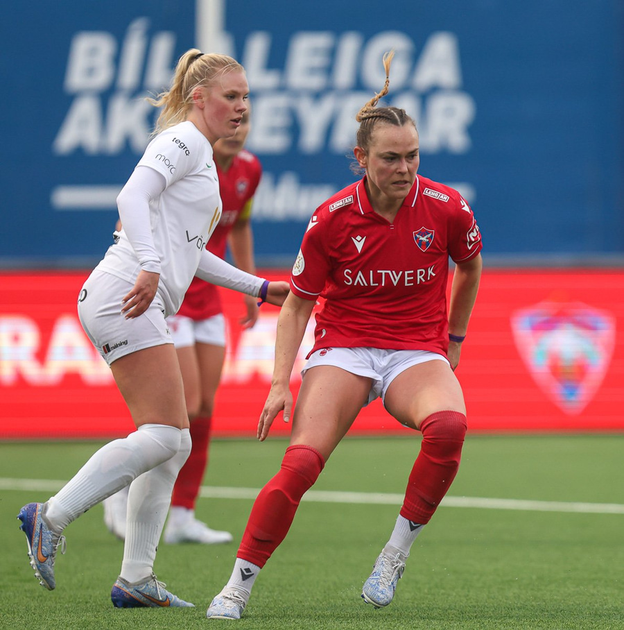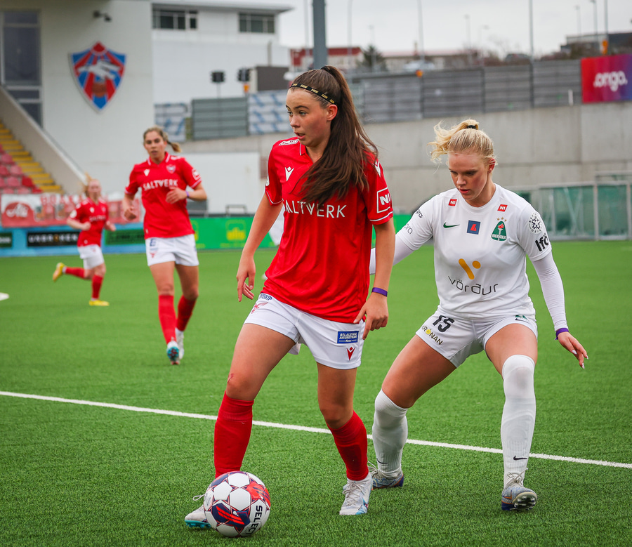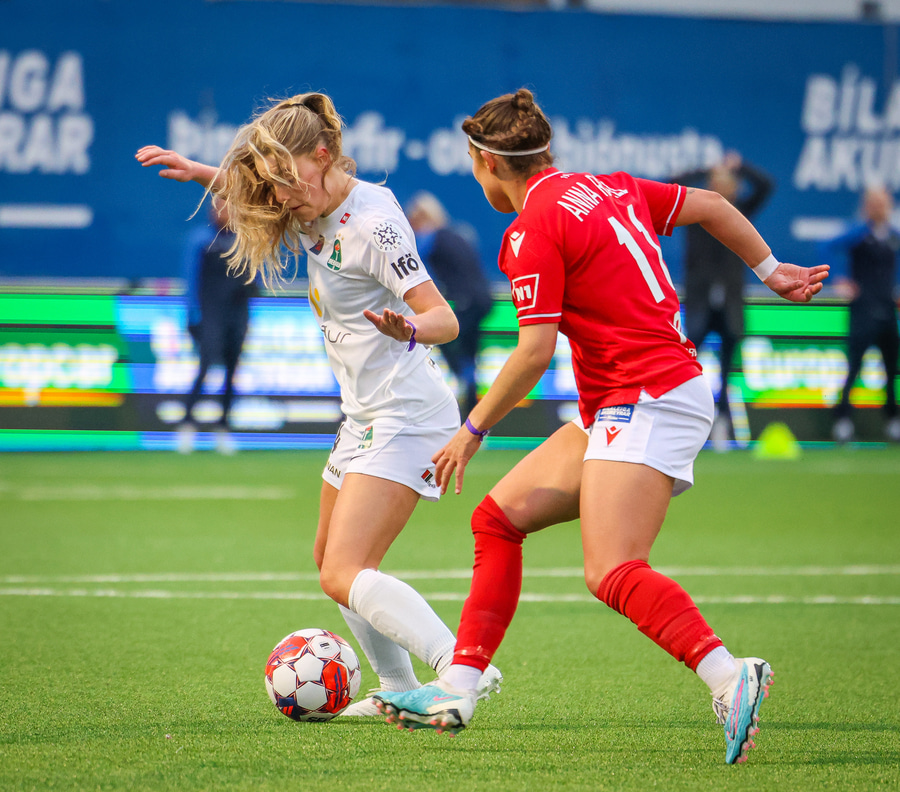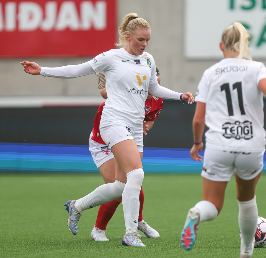 Birta fór illa með Önnu Rakel og á sendingu inn á teig en vantar einhverja á endan á fyrirgjöfinni