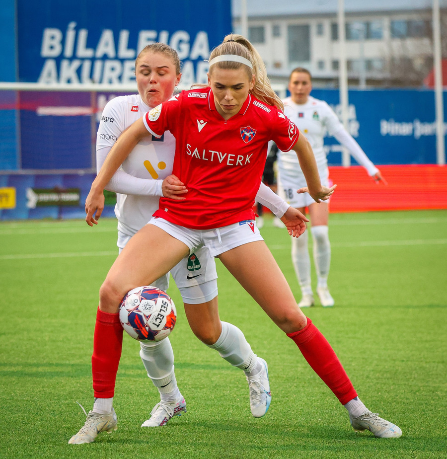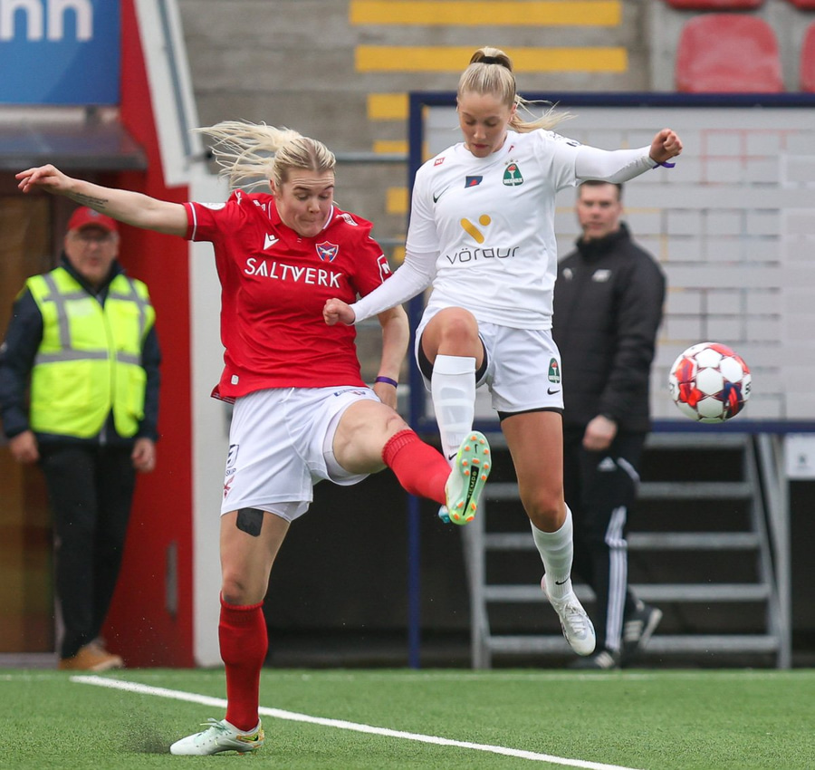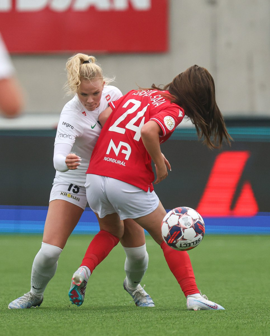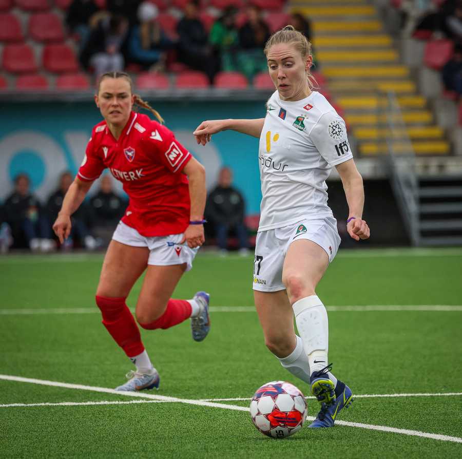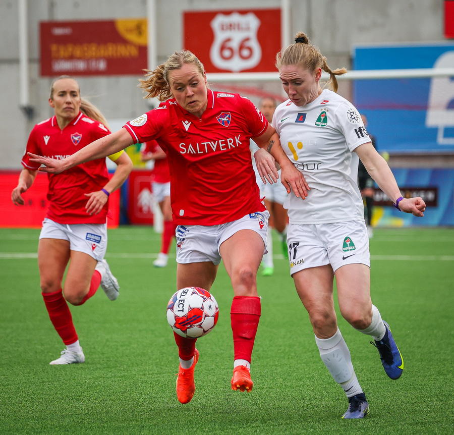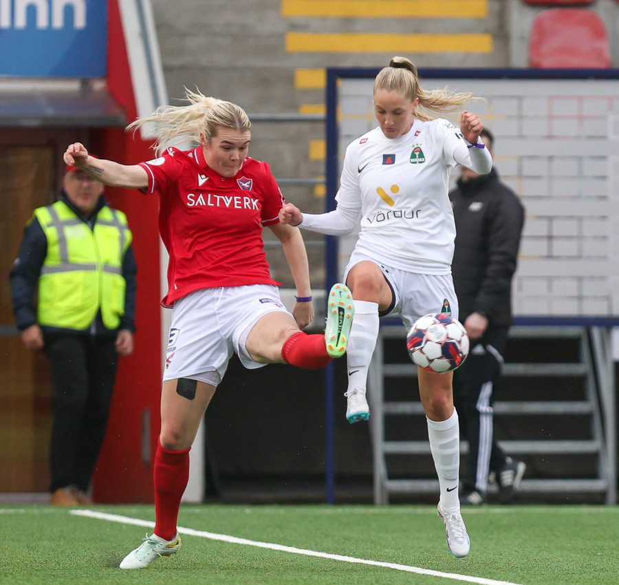 Birta fór illa með Önnu Rakel og á sendingu inn á teig en vantar einhverja á endan á fyrirgjöfinni