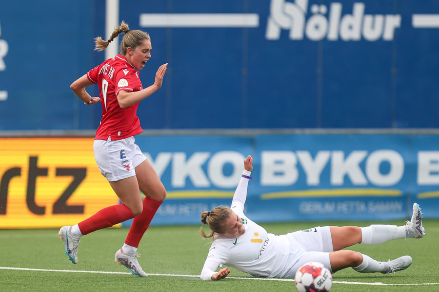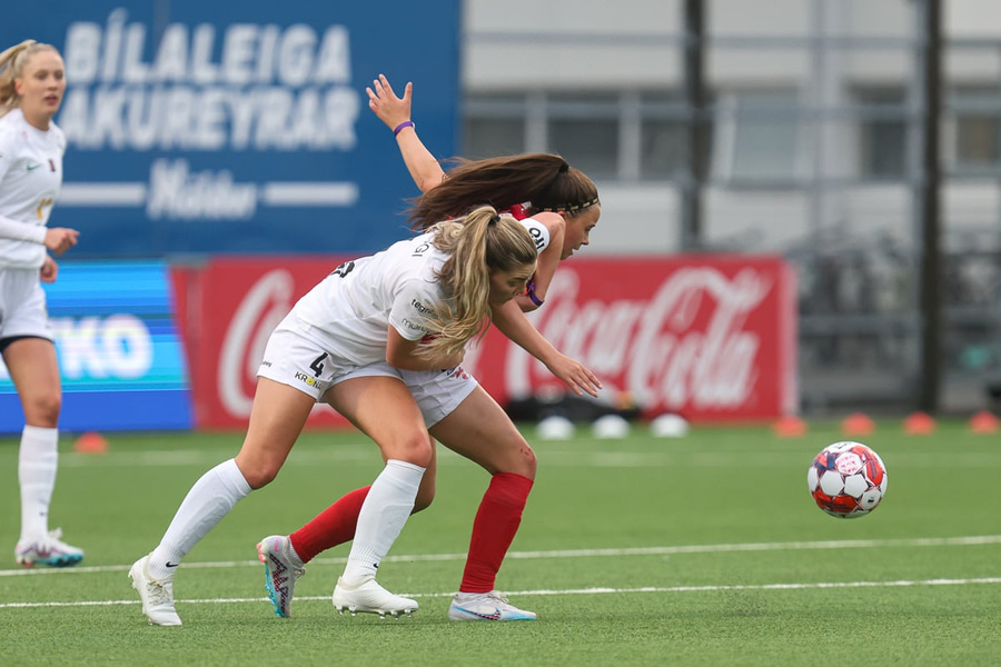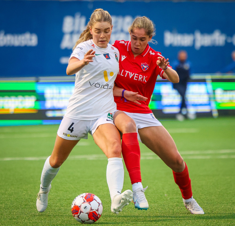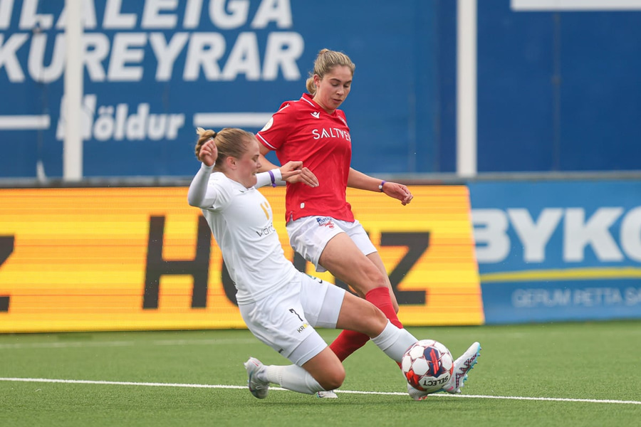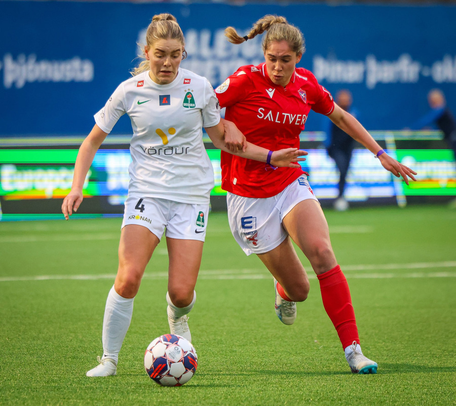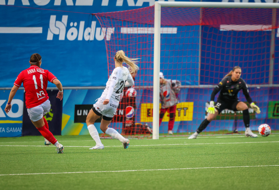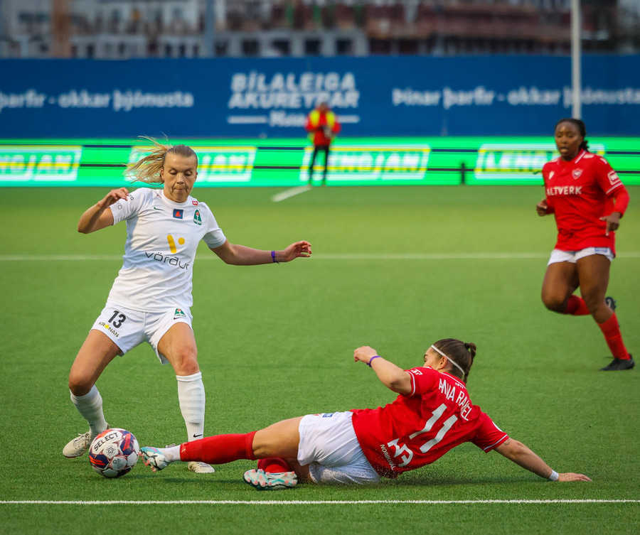 Birta fór illa með Önnu Rakel og á sendingu inn á teig en vantar einhverja á endan á fyrirgjöfinni