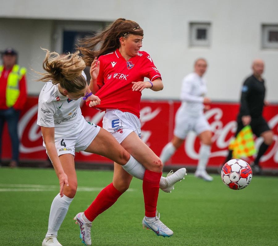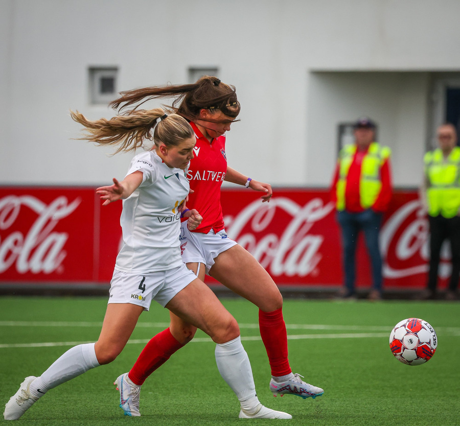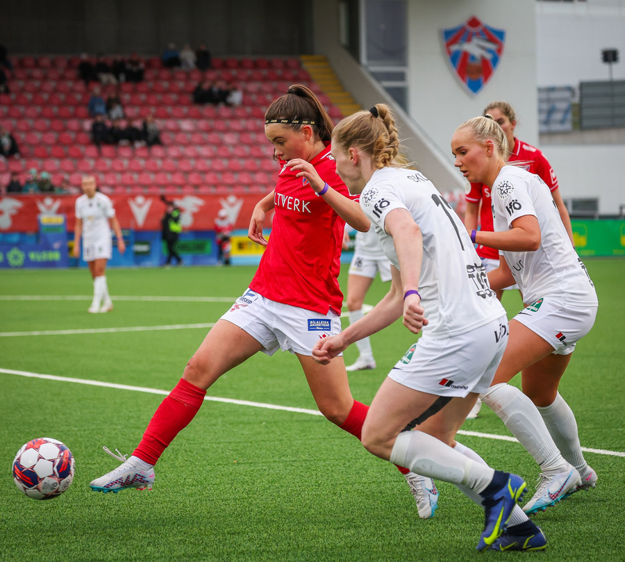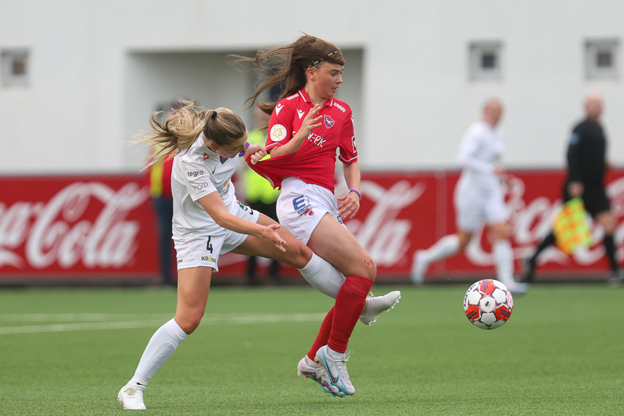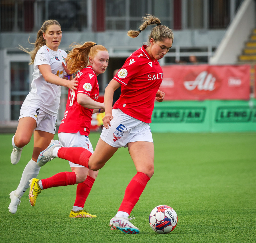 Elísa Viðars með flottan sprett upp vængin og á fyrirgjöf sem Blikar bjarga frá.