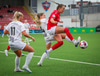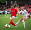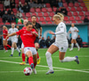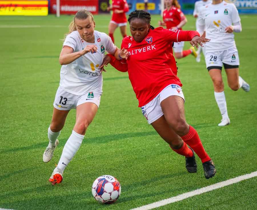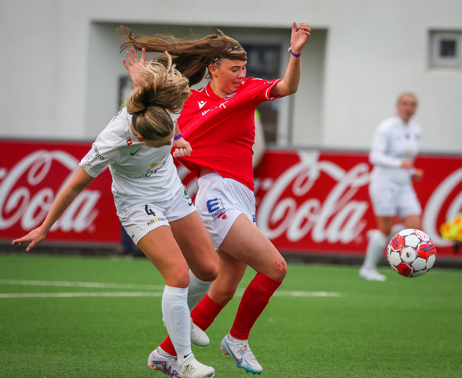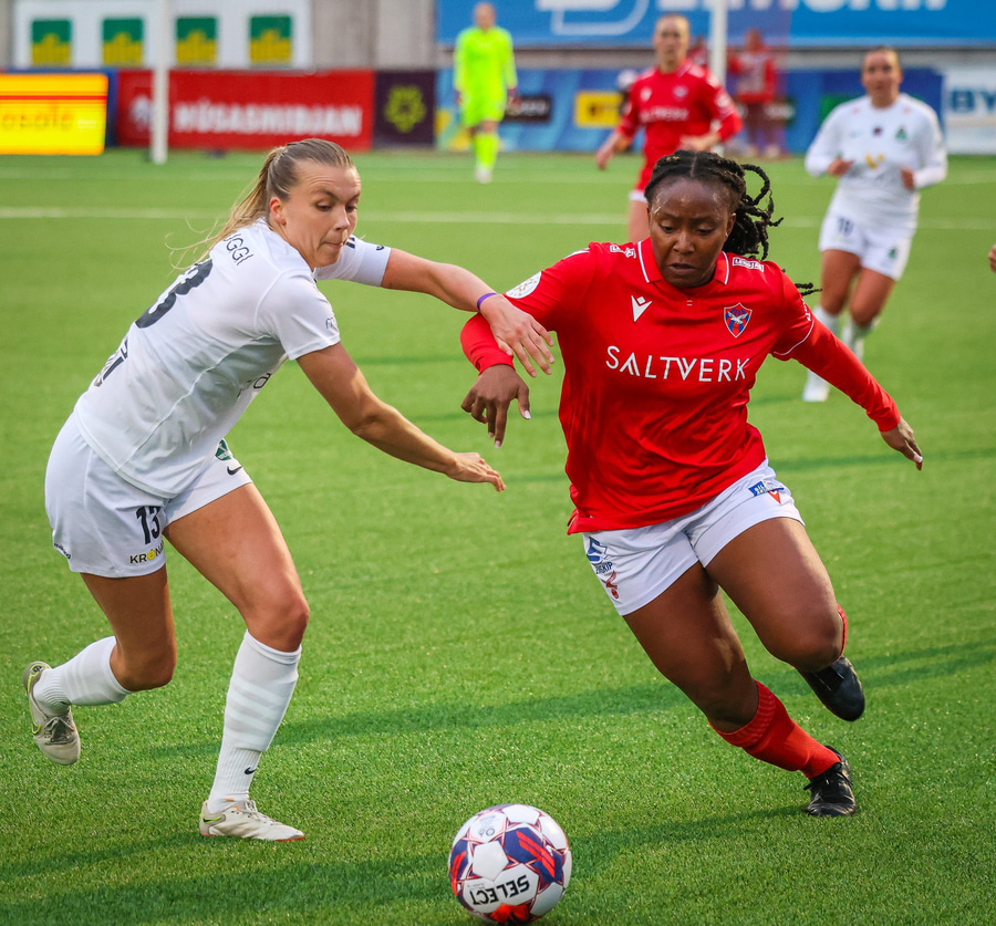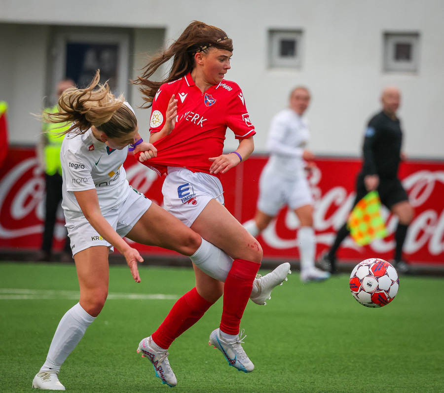 Elísa Viðars með flottan sprett upp vængin og á fyrirgjöf sem Blikar bjarga frá.