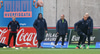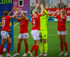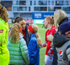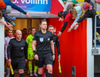 Liðin búin að stilla sér upp í myndatöku og líka stilla sér upp saman.