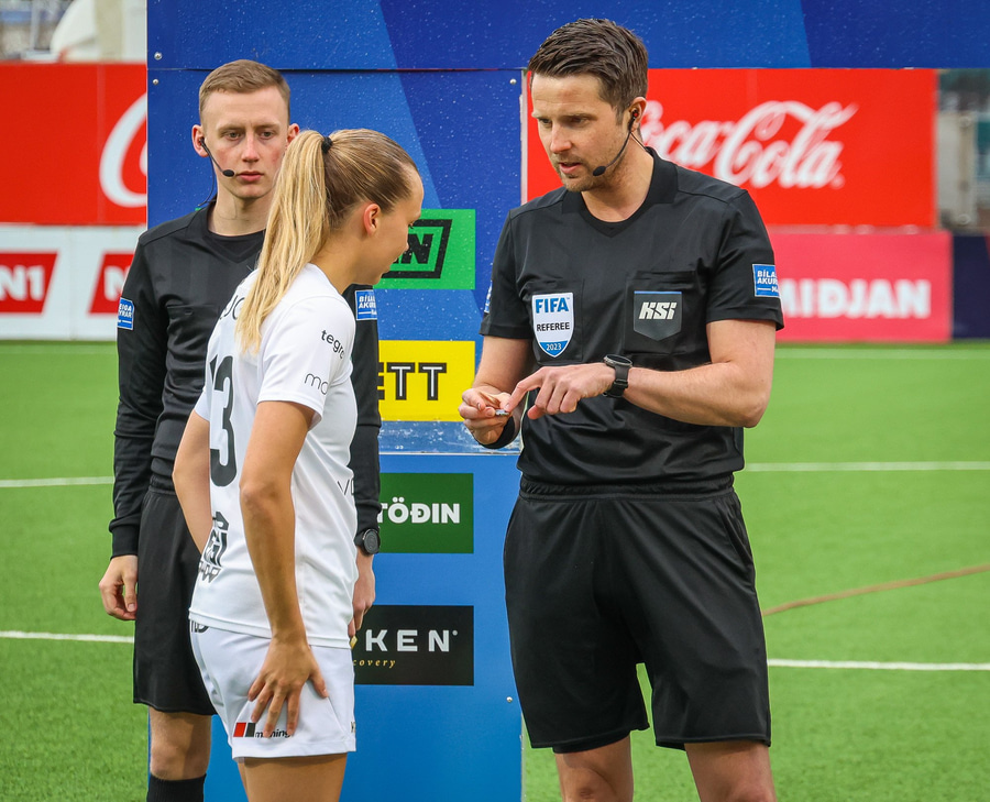 Smá hiti í þessu. Ási vildi fá hendi en ekkert dæmt svo brjóta Blikar og Ási alls ekki sáttur að fá ekki hendið á undan.
