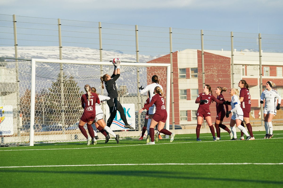 Aldís kemur með fyrirgjöf frá hægri, Mur skallar en Vera vér frá henni í markinu, Hugrún fylgir á eftir með skoti en það er yfir