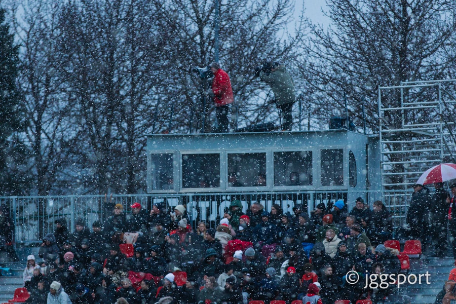 Það er ekki spilað á aðalvellinum þar sem verið er að skipta um gervigras þar. Þess vegna er búið að búa til nýja aðstöðu á æfingasvæði félagsins. Fjölmiðlaaðstaðan er í litlum skúr við stúkuna.