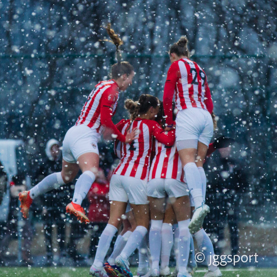 Liðin taka mynd saman fyrir leik til að sýna samstöðu með jafnréttisbaráttunni í kvennaboltanum.