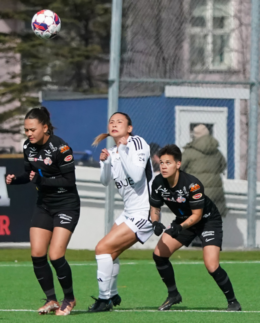 Sandra með fína hugmynd, sendir stungusendingu á Kristu en boltinn aðeins of fastur fyrir hana og hann rúllar framhjá.