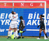 Sandra María leggur boltann á Kimberley Dóru sem hittir boltann mjög illa og hann rúllar vel framhjá markinu.