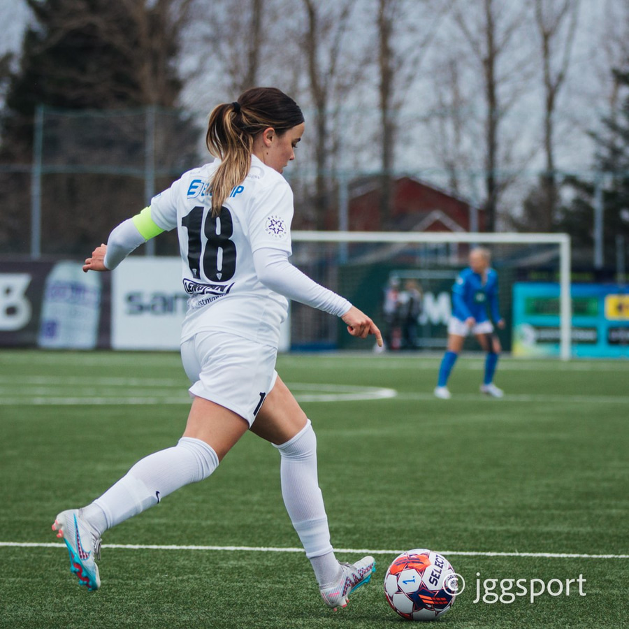 Boltinn dettur fyrir Gyðu fyrir utan teginn og hún á fínt skot en hittir ekki markið