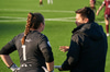 Telma er ekki nógu ánægð með boltann og biður dómarann um að skipta um bolta sem er minnsta mál hjá Eðvarð