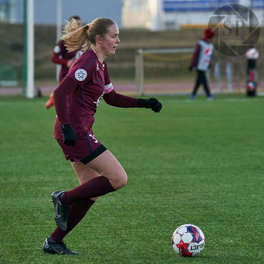 Birta með góðan sprett upp hægri kantinn með boltann en Hannah verst vel og boltinn endar útaf í markspyrnu
