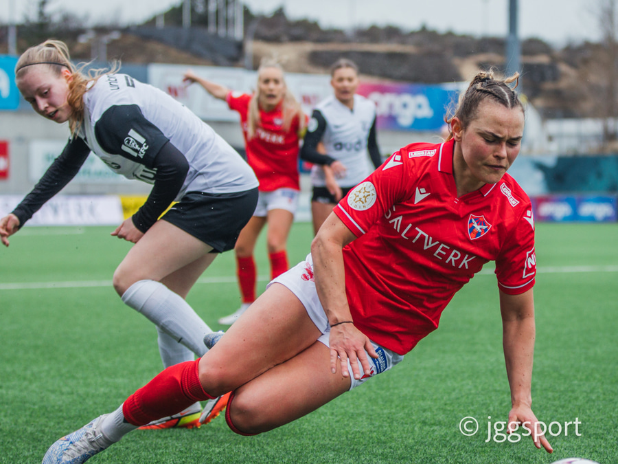 Bryndís að sleppa í gegn en Heidi með stórkostlega tæklingu og heldur þessu ennþá í 2-0!