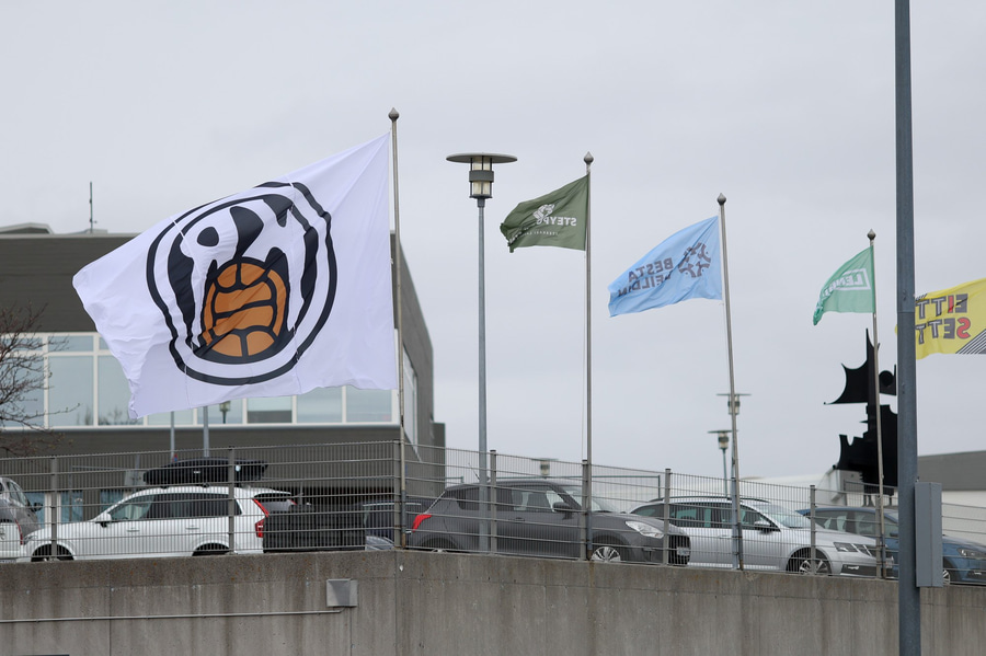 Nýju treyjurnar ekki lengi að skila marki. Eyjólfur Garðarsson ljósmyndari tók þessa mynd.
