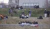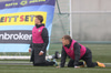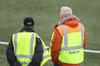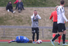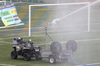 Út af með hræið er kallað úr stúkunni. Birkir Valur settist niður og fær aðhlynningu.