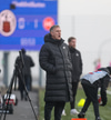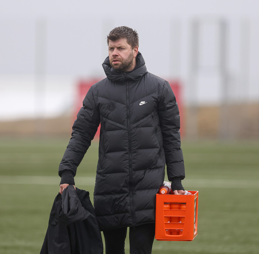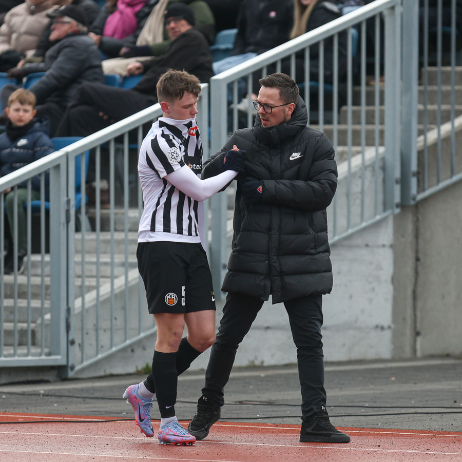 Rúnar gekk til Erlends eftir flautið og fór yfir málin. Ég gæti trúað því að bæði augun verði á Eyþóri og hans varnartilburðum í seinni.