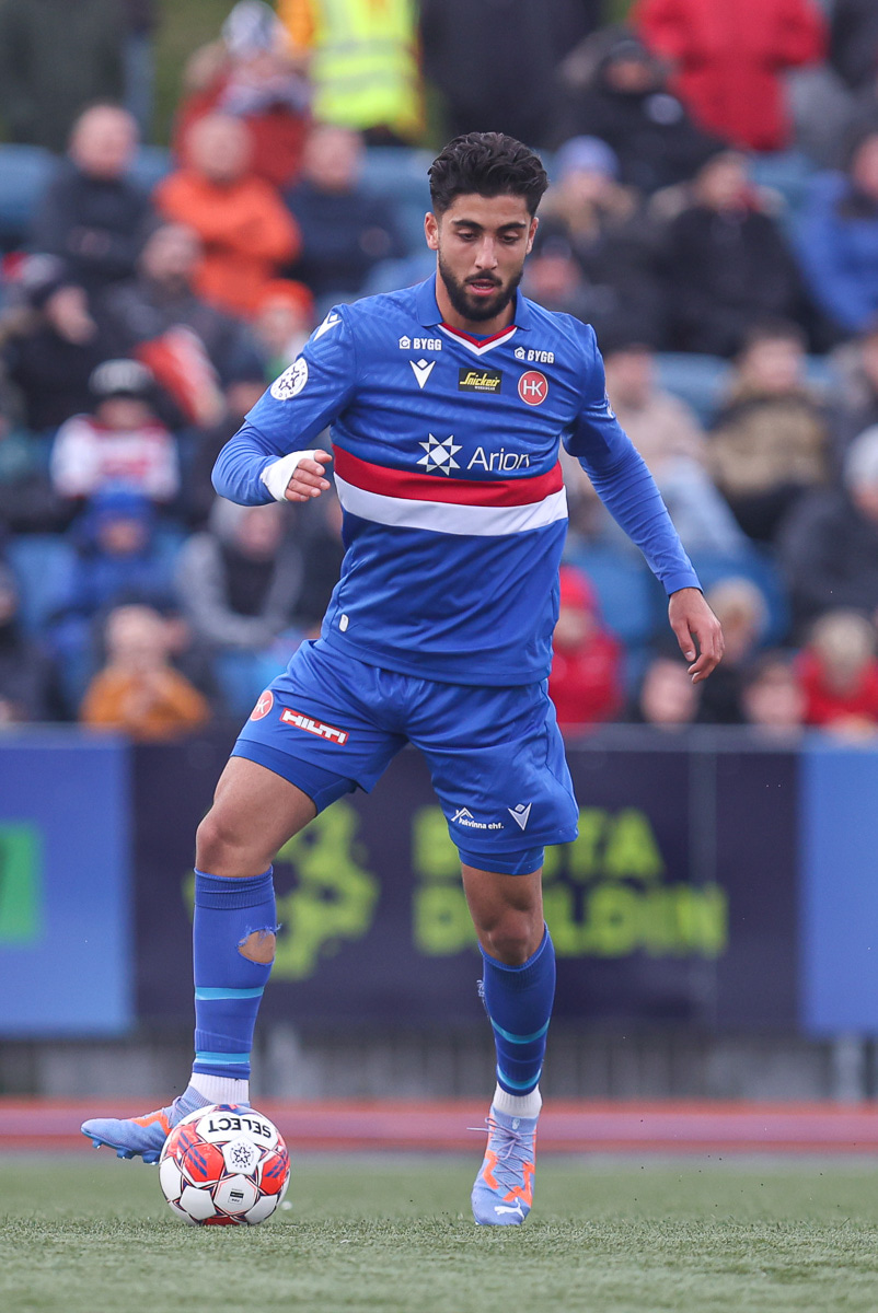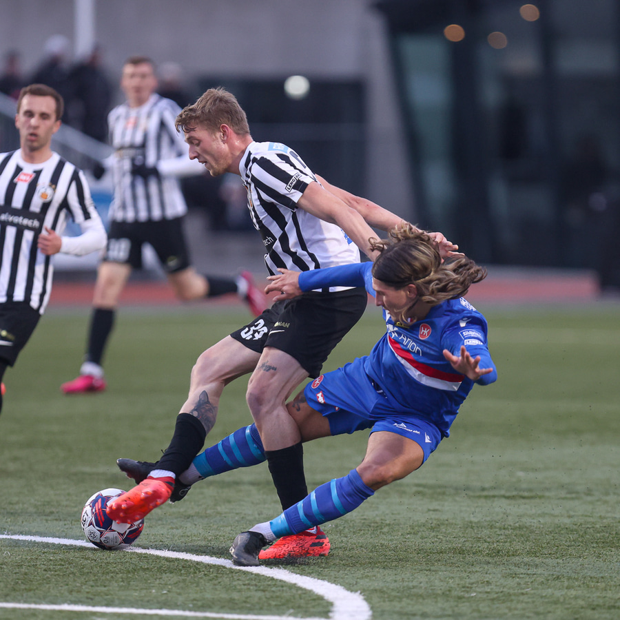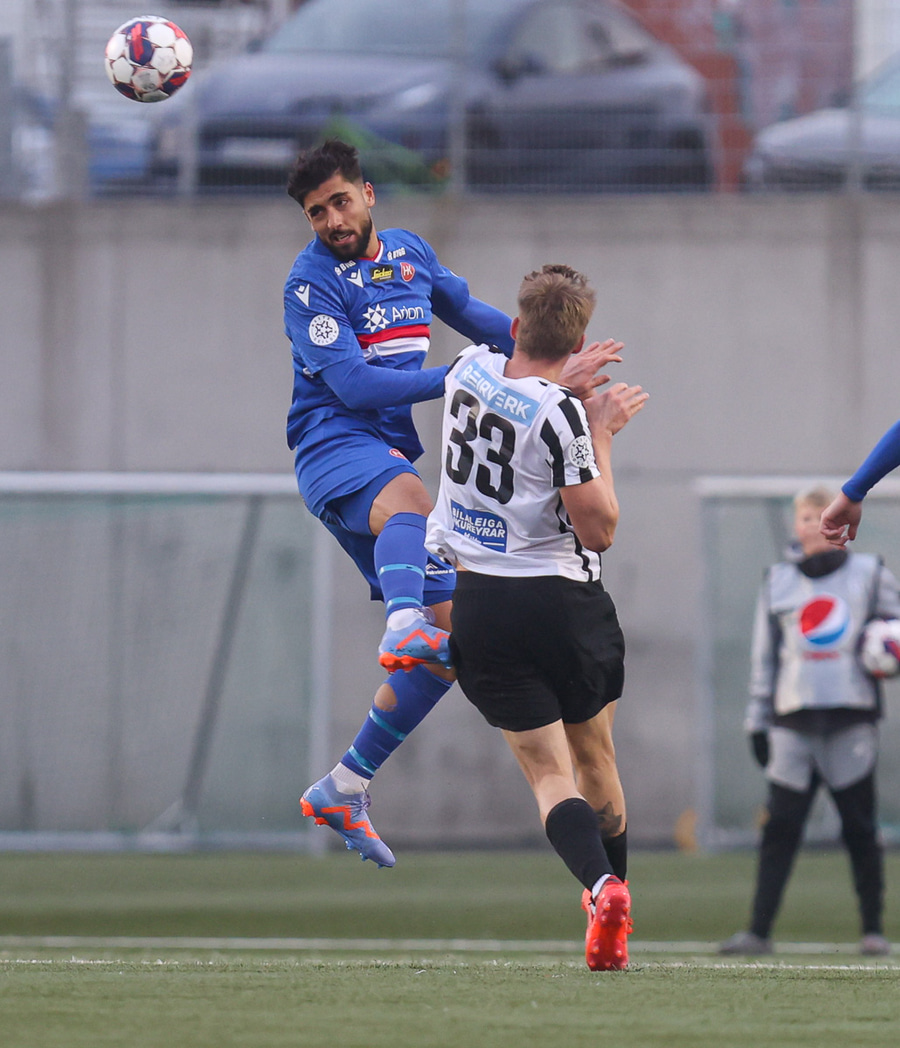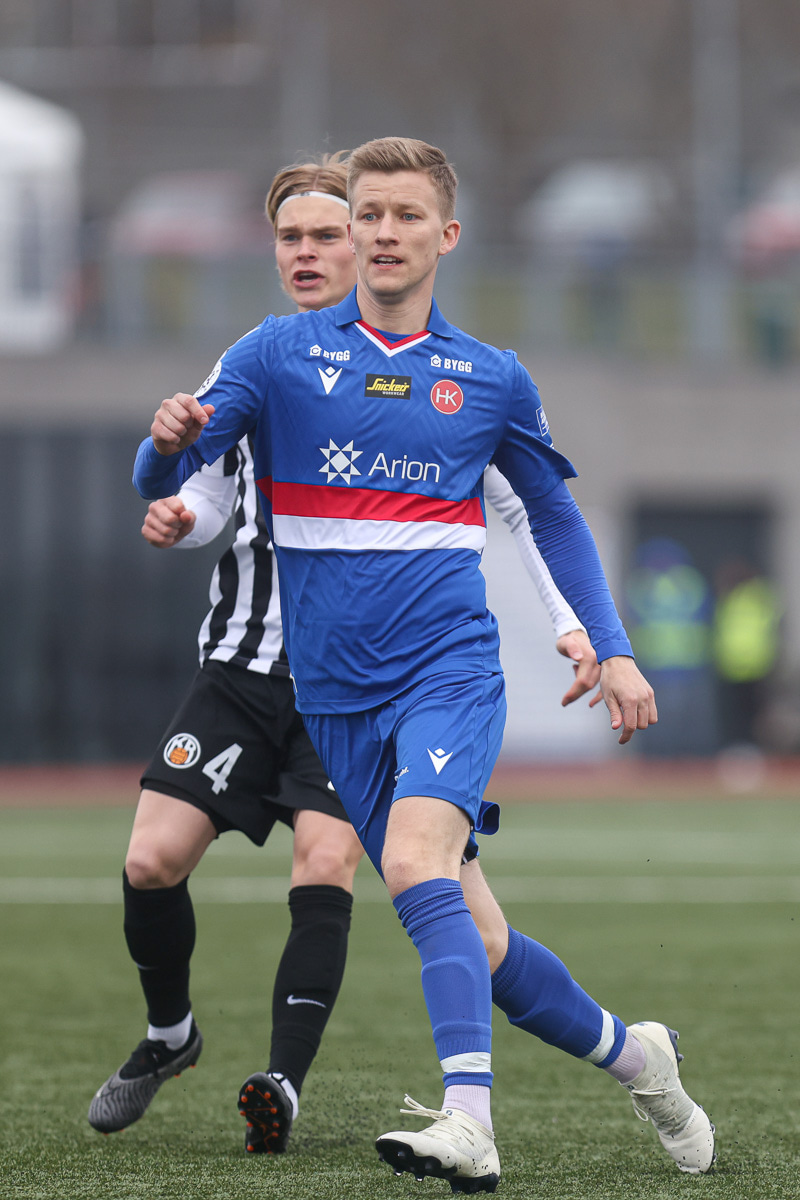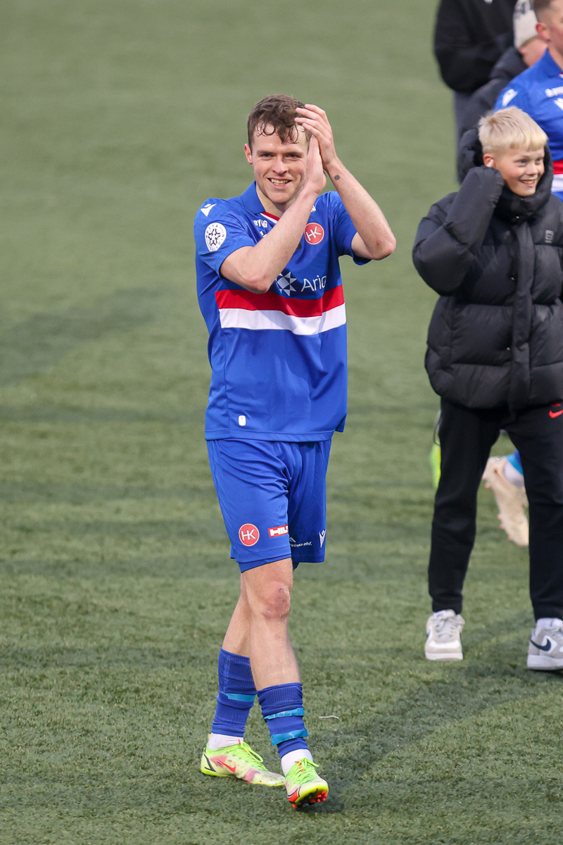HK fær aukaspyrnu úti á hægri kantinum. Ívar með boltann inn á teig, Jakob skallar til hliðar, Arnþór reynir aðra fyrirgjöf, Ahmad nær til boltans en skallinn laus og Simen getur tekið boltann upp.