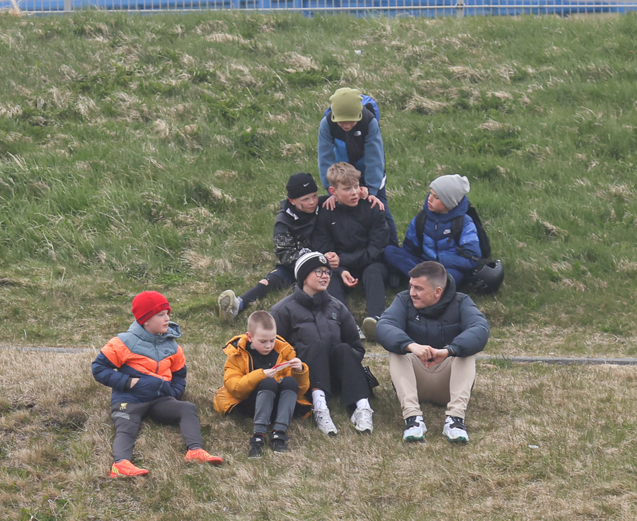 Gervigras, átta gráðu hiti, skýjað og smá gola.