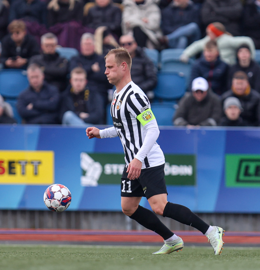 Olav með skot í varnarmann, boltinn fellur vel fyrir gestina og Eyþór kemst í góða stöðu úti á hægri kanti. Hann tekur Jóhannes á og kýs svo að dúndra boltanum fyrir, ekki viss hvað þetta átti að vera. Beint í innkast.