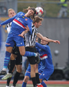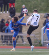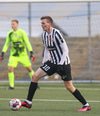 Kiddi lætur vaða á lofti eftir spyrnu Atla Sigurjóns. Skot beint í varnarmann.