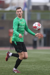 Þeir setja boltan stutt á Kristófer sem reynir að senda boltan inn í teig en hann fer afturfyrir og það er markspyrna.