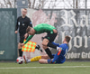 Sigurður Steinar er hársbreidd frá því að sleppa í gegn þar sem hann er fljótai en Alex að ná boltanum eftir góða stungusendingu. Robert Blakala gerir hinsvegar frábærlega í að koma út úr markinu og hreinsa boltann frá.