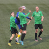 Hornspyrna frá Njarðvík sem finnur höfuðið á Marc Mcausland en skallinn hans fer yfir.