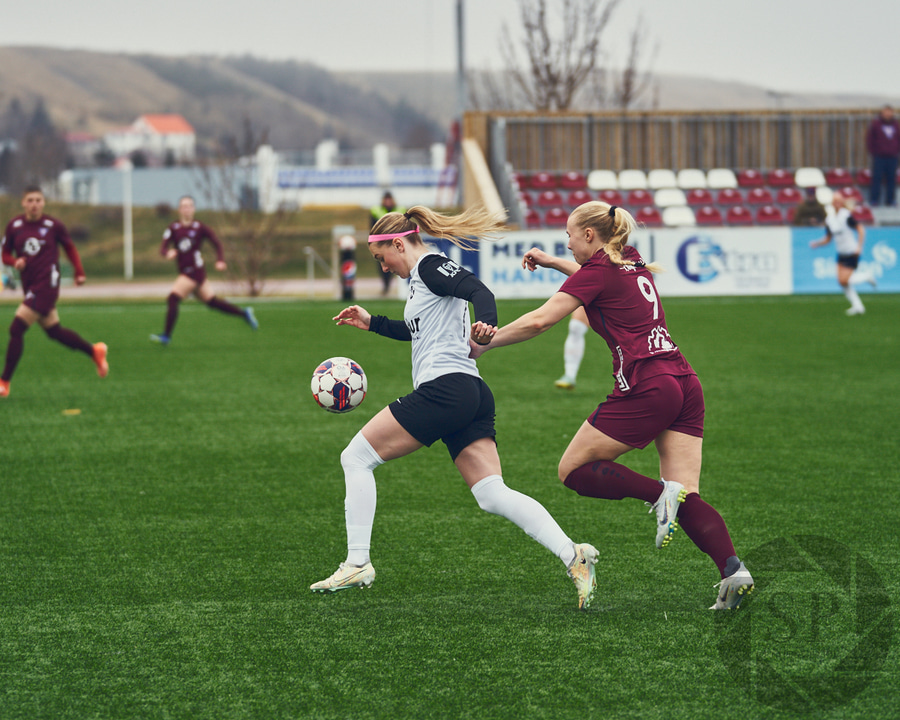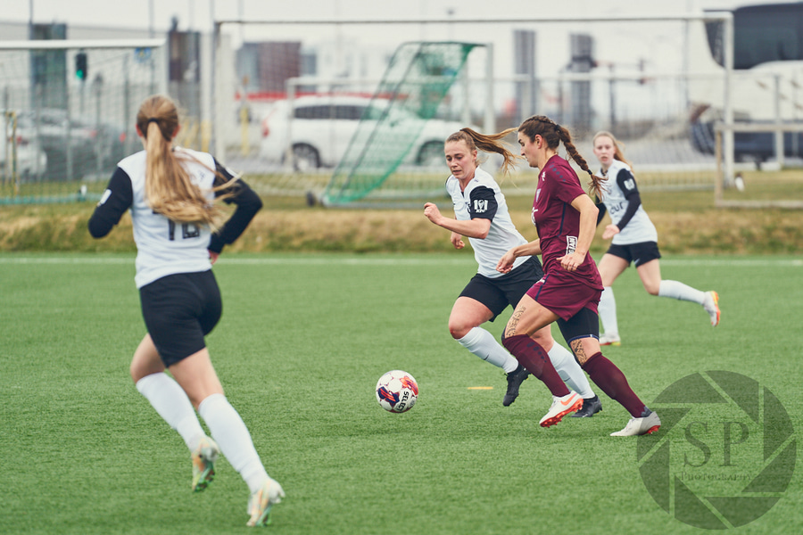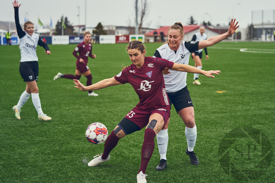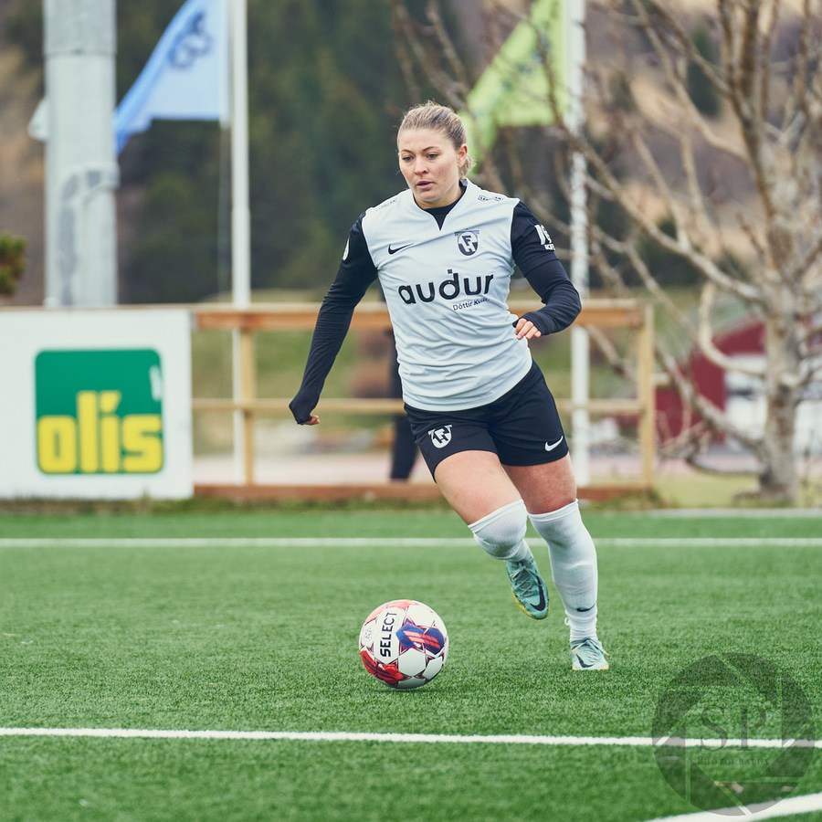 Melissa fær sendingu frá Murielle, reynir skot en Sunneva hendir sér fyrir og boltinn aftur fyrir.