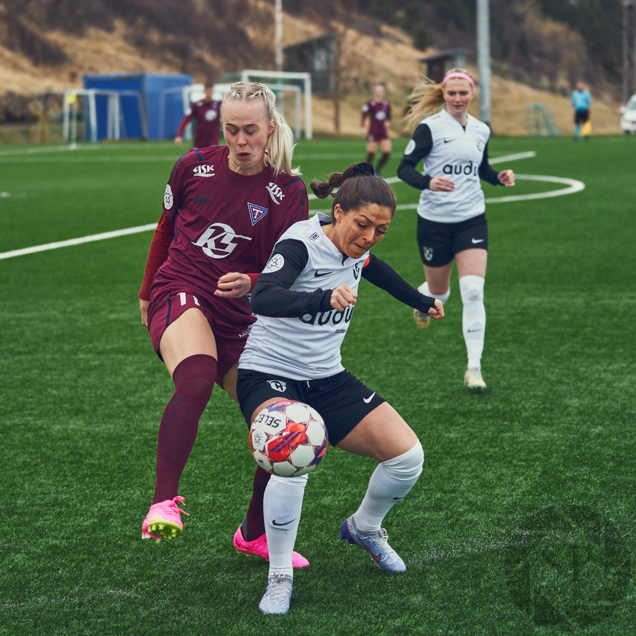 Murielle leikur sér að Heidi, fer framhjá henni og á snertingu inn á teiginn, sú snerting kannski aðeins of þung, Aldís nær að koma vel á móti og nær að loka vel á skotið sem Murielle reyndi.