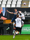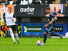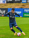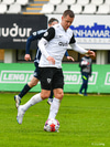 Kjartan Kári prjónar sig upp hægri kantinn og á svo skot sem fer í varnarmann. Heimamenn eru alveg brjálaðir og vilja fá hendi víti en Vilhjálmur gefur til kynna að hann hafi verið með hendina við síðuna og því ekki brotlegt.