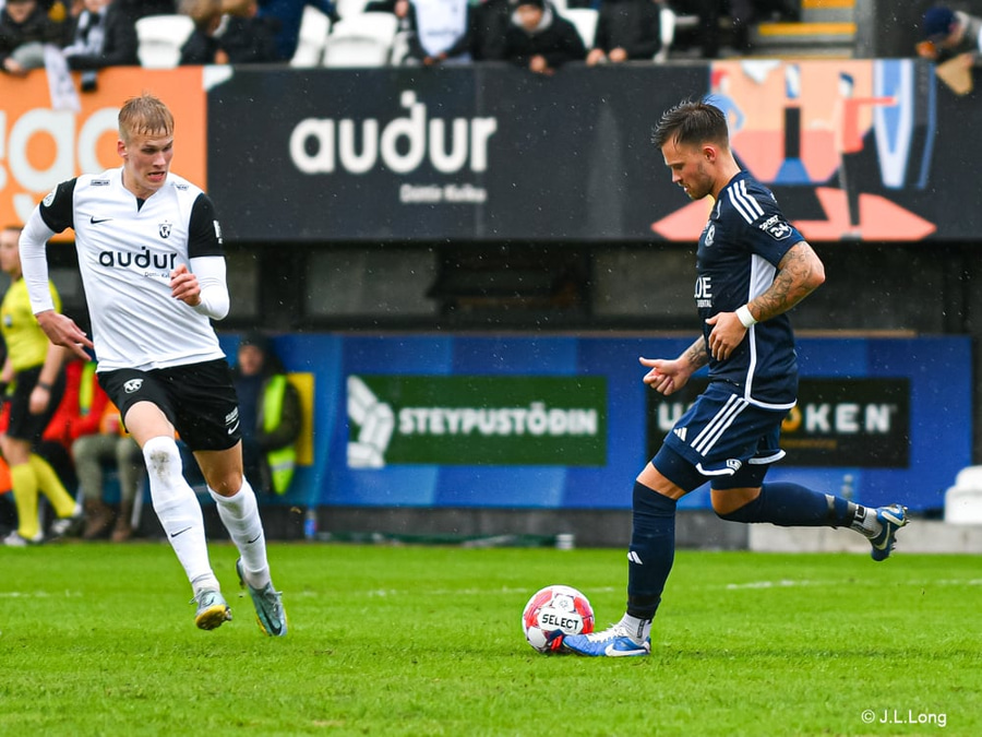 Keflavík tekur aukspyrnu frá miðlínu inn í teig þar sem verður til smá darraðardans og boltinn dettur fyrir Viktor á vítapunktinum þar sem hann hamrar boltanum í þaknetið með sinni fyrstu snertingu í leiknum!