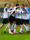 Rosenörn kemur þá út úr markinu til að mæta Kjartan en Kjartan tekur chippar boltanum bara yfir Rosenörn. Alvöru afgreiðsla!!