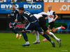 Hann þarf samt að hlaupa frá miðlínu og þegar hann kemur að vítateignum nær Rosenörn að loka vel þannig að Vuk skýtur í hann.