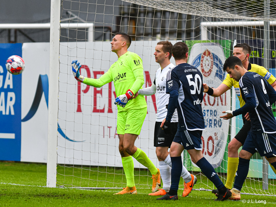 Boltinn kemur fram eftir hornspyrnu frá Keflavík og Sindri Þór kiksar boltanum þannig að Vuk er sloppinn einn í gegn.