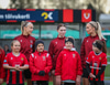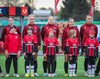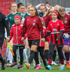 Fyrirliðarnir leiða lið sín til vallar, þetta fer að fara að byrja!