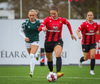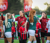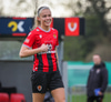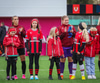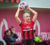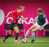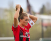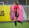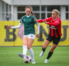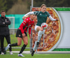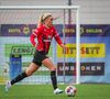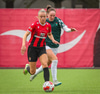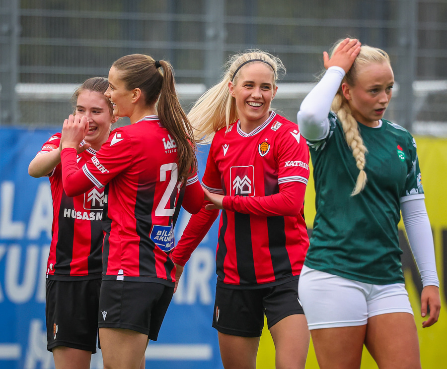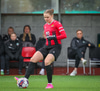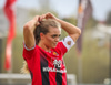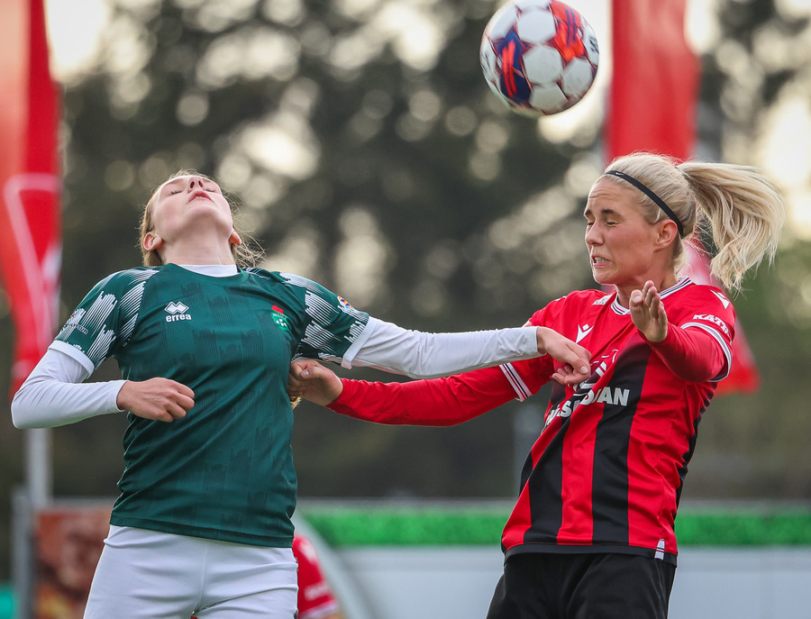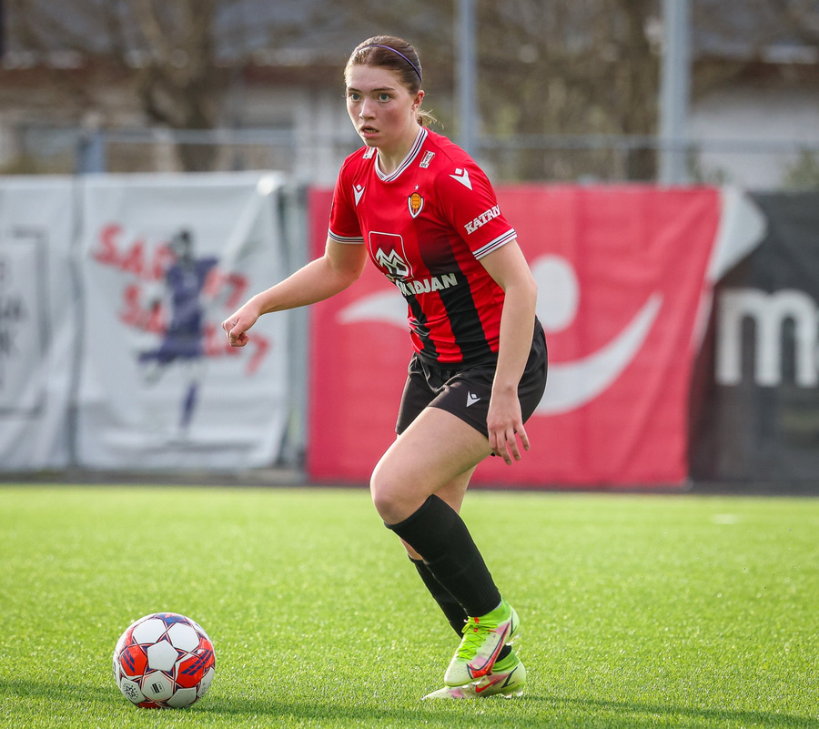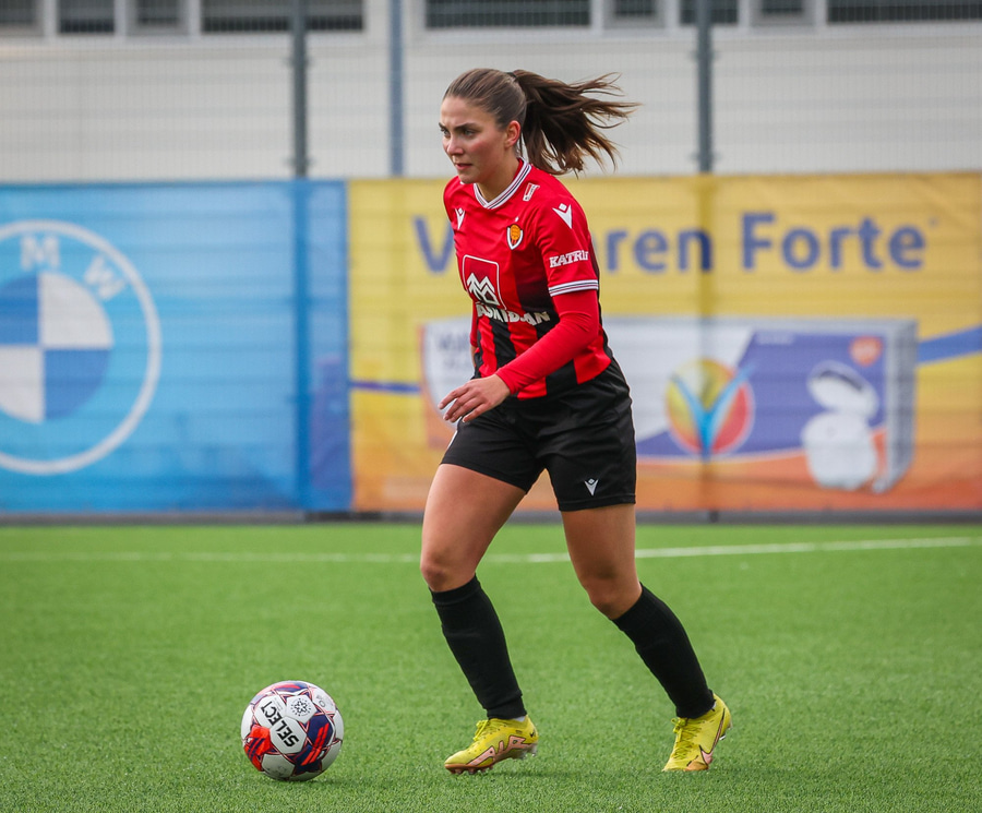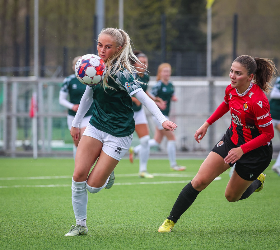 Herdís fær boltann í markinu og er lengi að losa sig við hann, Nadía vinnur boltann af henni en setur boltann framhjá. Herdís stálheppin!
