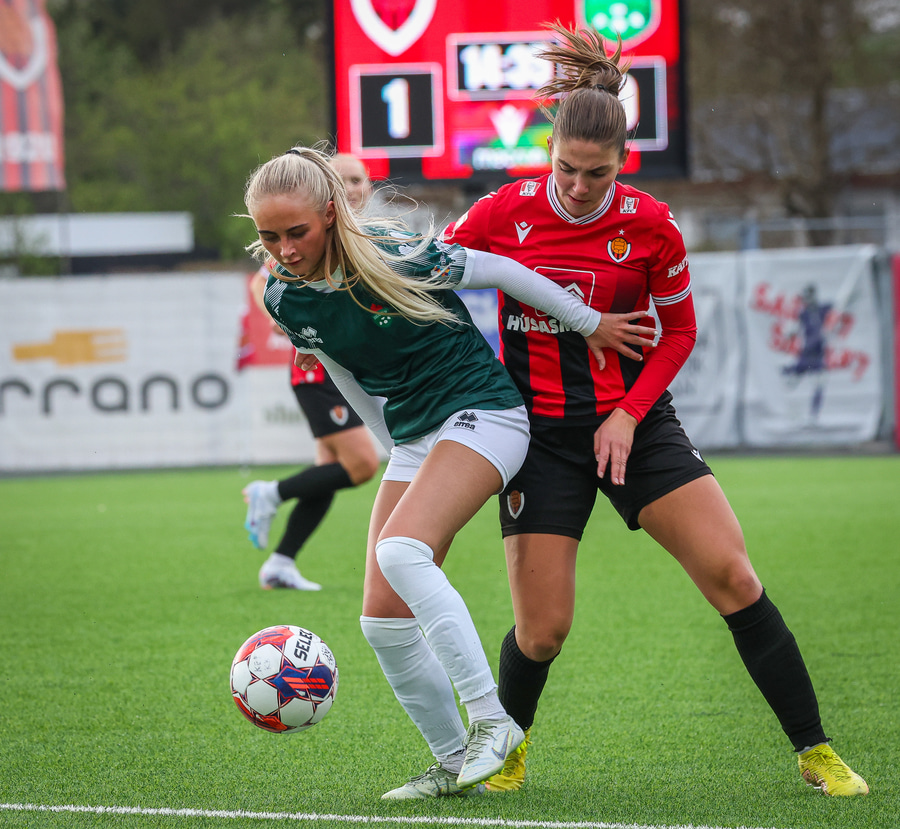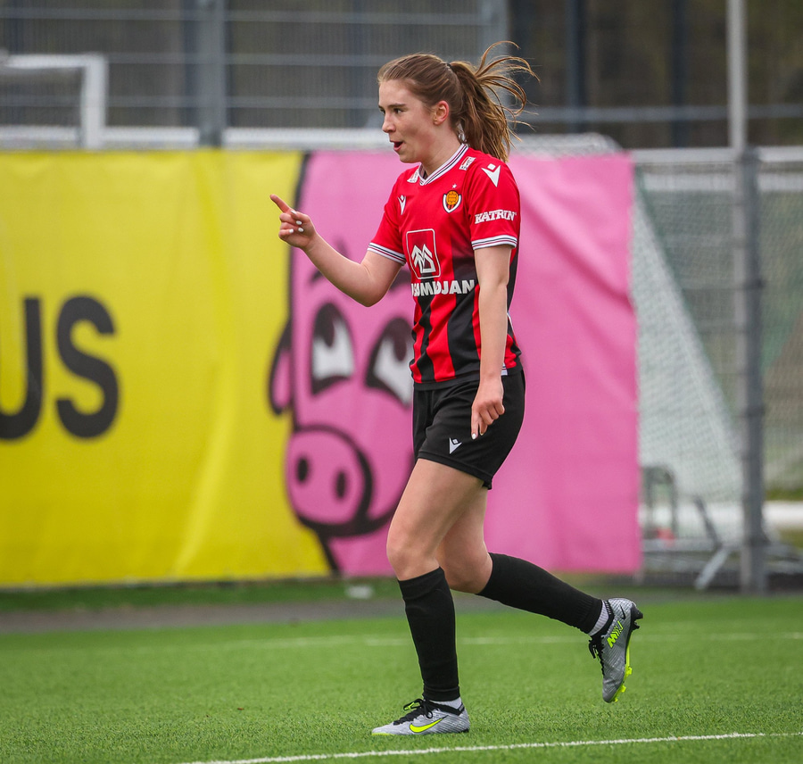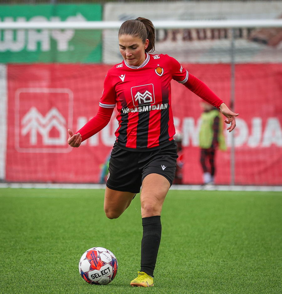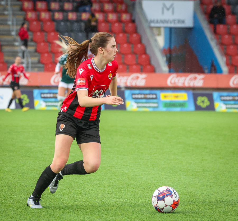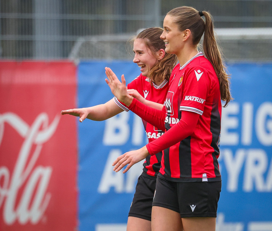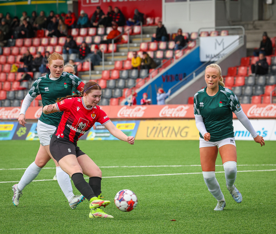 Emma með geggjaðan bolta niður kanntinn á Sigdísi sem kemur með geggjaðan bolta út í teig á Nadíu sem tekur skotið rétt fram hjá! Það munaði sáralitlu að þessi hefði farið inn!