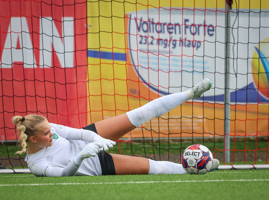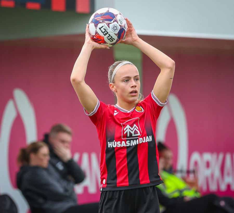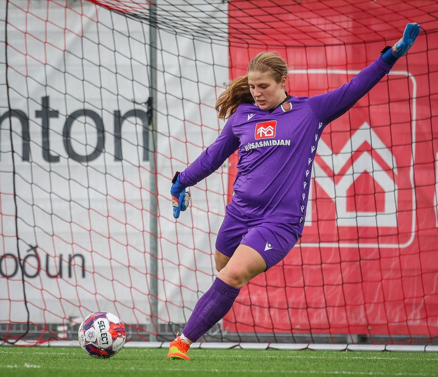 Ég held að Sigurborg sé að fara að snerta boltann þar sem Víkingur á hér markspyrnu!