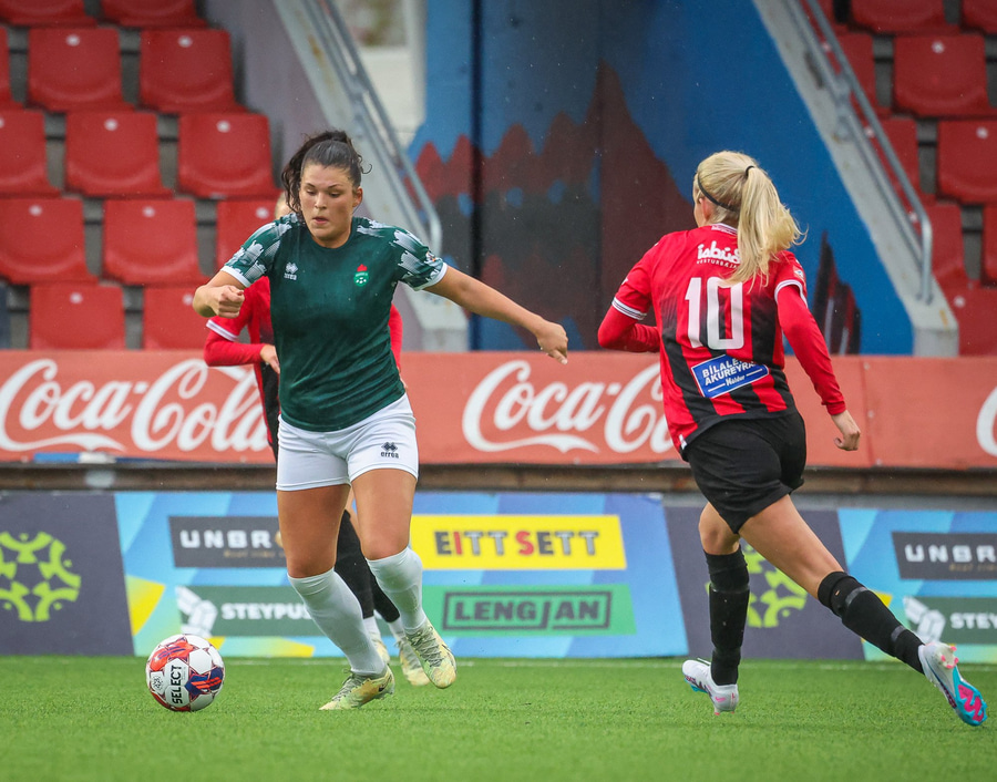 Og þar með flautar Nour þetta í hálfleik. Víkingar hafa verið með yfirhöndina allan leikinn. Það var með hreinum ólíkindum að staðan hafi ennþá verið 1-0 eftir 10 mínútur. En Augnablikskonur unnu sig aðeins inn í leikinn seint í fyrri hálfleik. Þær komu með ágæta bolta fyrir og áttu eitt langskot. En Víkingskonur leiða 2-0 í hálfleik.