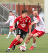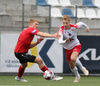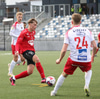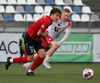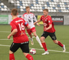 Bjartur Bjarmi prjónar sig í gegnum vörn Þórsara og reynir að koma boltanum á Arnór Gauta í álitlegu færi en Aron Birkir hársbreidd á undan í boltann.