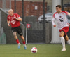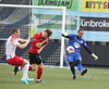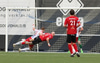 Ásgeir með skot að marki eftir sendingu frá Hjörvari en Aron Birkir á tánum og slær boltann frá marki.